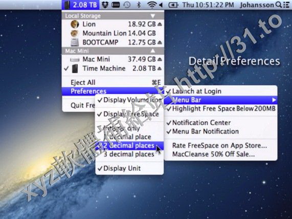 • FreeSpace v1.2.15 Multilingual MacOSX 英文正式版(全功能的可用空間顯示器軟體)